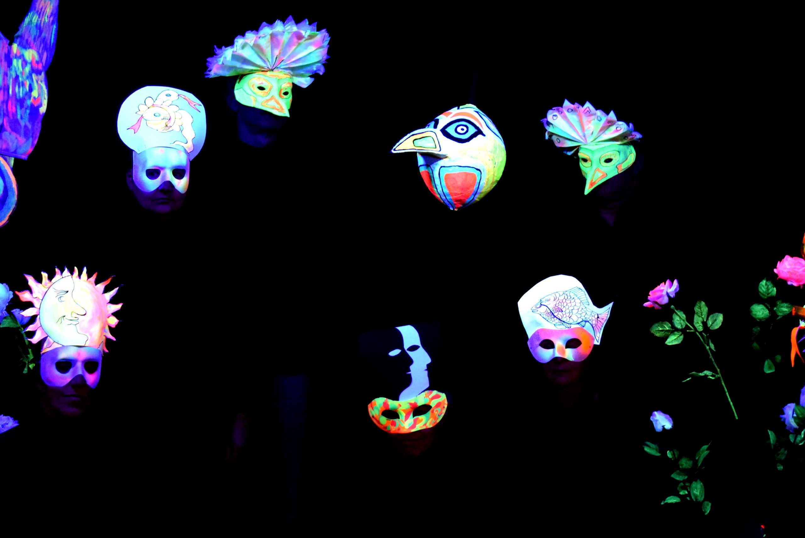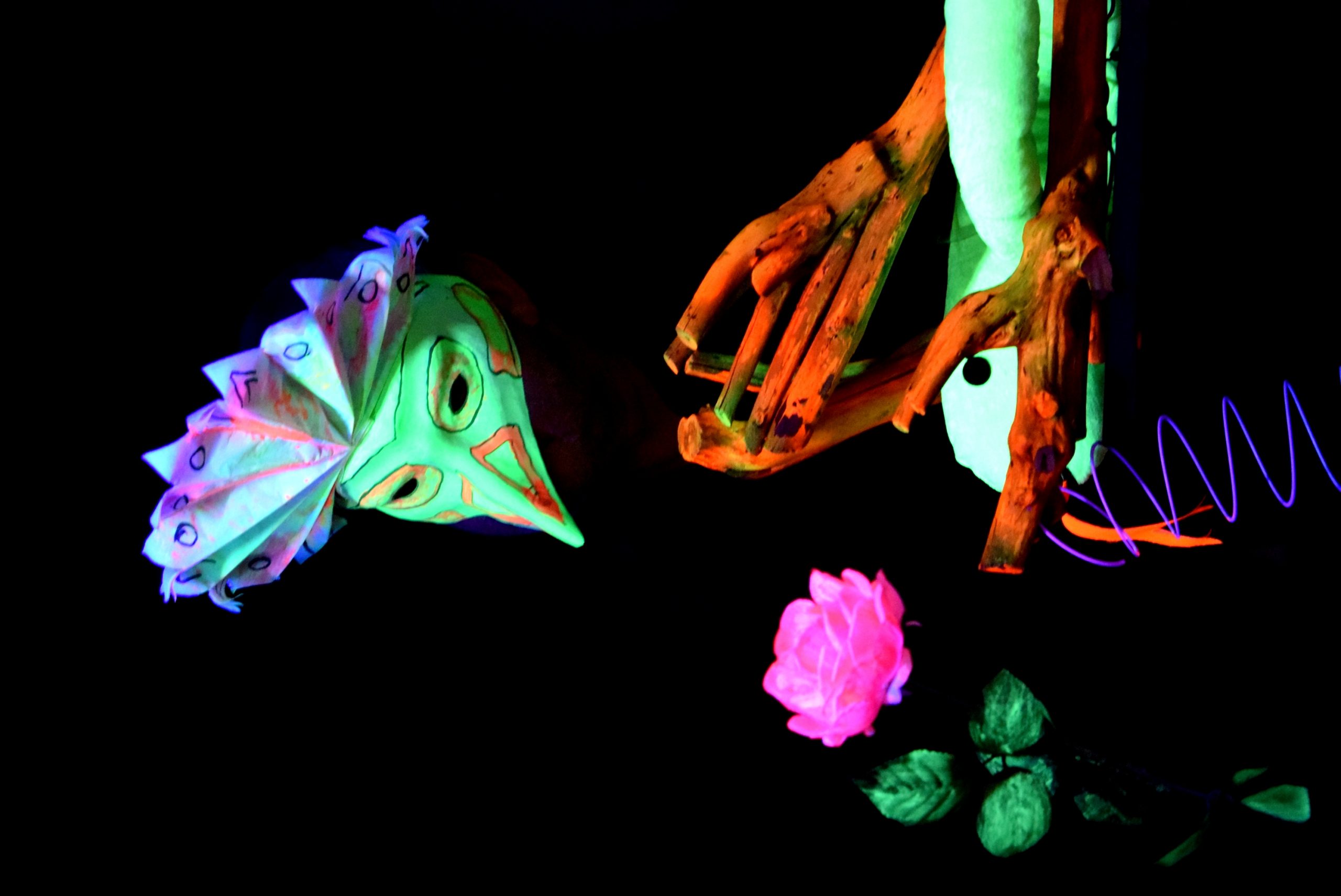 Paradiesisch poetisch geht es in der alten Molkerei in Niederwallmenach zu, wenn dort die Lesepaten der Initiative 55 plus-minus aus Anlass ihres 15-jährigen Bestehens zusammen mit der Bad Emser Schwarzlichttheater-Gruppe in einer Inszenierung von Jelena Majdandzic „Piktors Verwandlungen“ aufführen. Fotos: Bernd-Christoph Matern