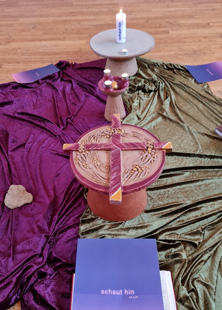 Ganz im Zeichen des ökumenischen Kirchentages und dessen Motto „schaut hin“ stand außerdem ein Gottesdienst, den Pfarrer Matthias Metzmacher im medizinischen Zentrum der Klinik Lahnhöhe gefeiert hat. Dazu war auch der Gottesdienstraum des Medizinischen Zentrums in Lahnstein entsprechend gestaltet. Metzmacher ist nicht nur Mitglied der Vorbereitungsgruppe, sondern auch Klinikseelsorger.
