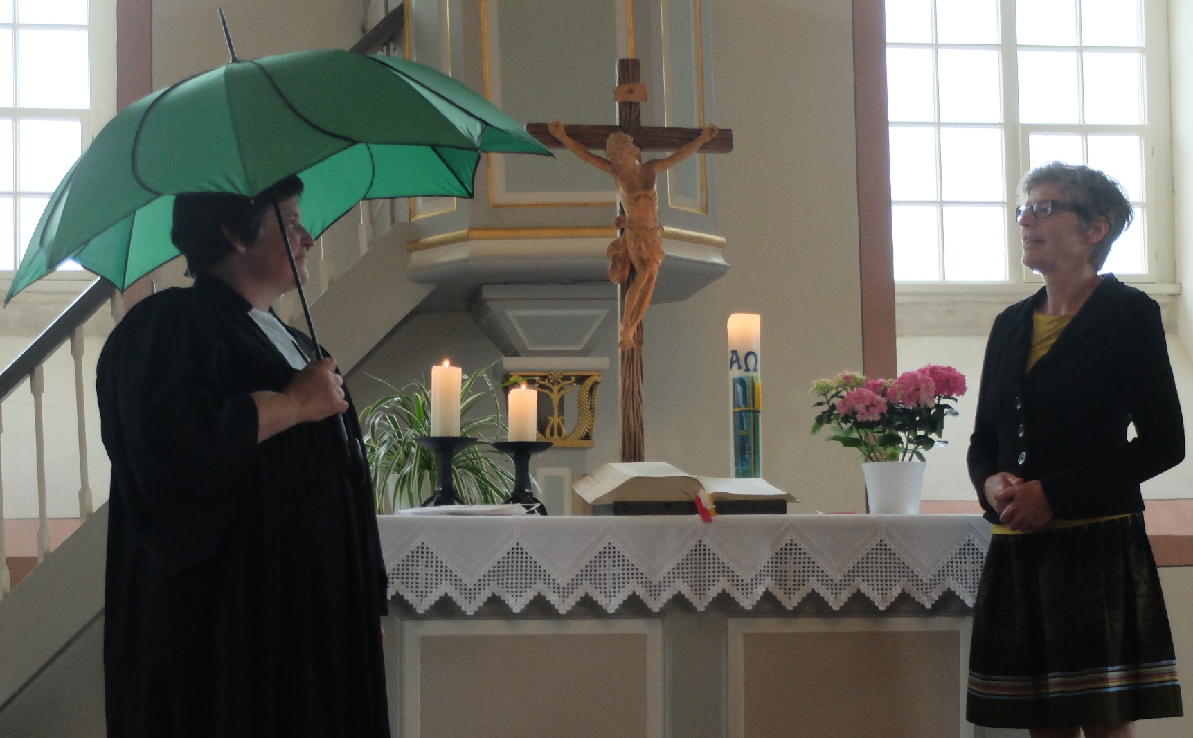 Nach knapp sechs Jahren hat Claudia Biester ihre erste Pfarrstelle in Welterod verlassen. Sie ist nun stellvertretende Dekanin des Dekanats Hochtaunus mit Sitz in Bad Homburg. Eine Verabschiedung mit einem gut besuchten Gottesdienst, in dem sie den Menschen noch einmal hätte Danke sagen können, war ihr aufgrund der Corona-Pandemie nicht vergönnt. Bei ihrer Ordination und Amtseinführung 2014 mit Pröpstin Annegret Puttkammer war das anders. Trotzdem ließ es sich Dekanin Renate Weigel nicht nehmen in einer kleinen Andacht der scheidenden Kollegin für ihren Dienst zu danken, ihr Gottes Segen mitzugeben. Symbolisch klappte sie einen Schirm auf mit dem Wunsch, dass sie behütet bleibe unter Gottes Schutz und Schirm.
