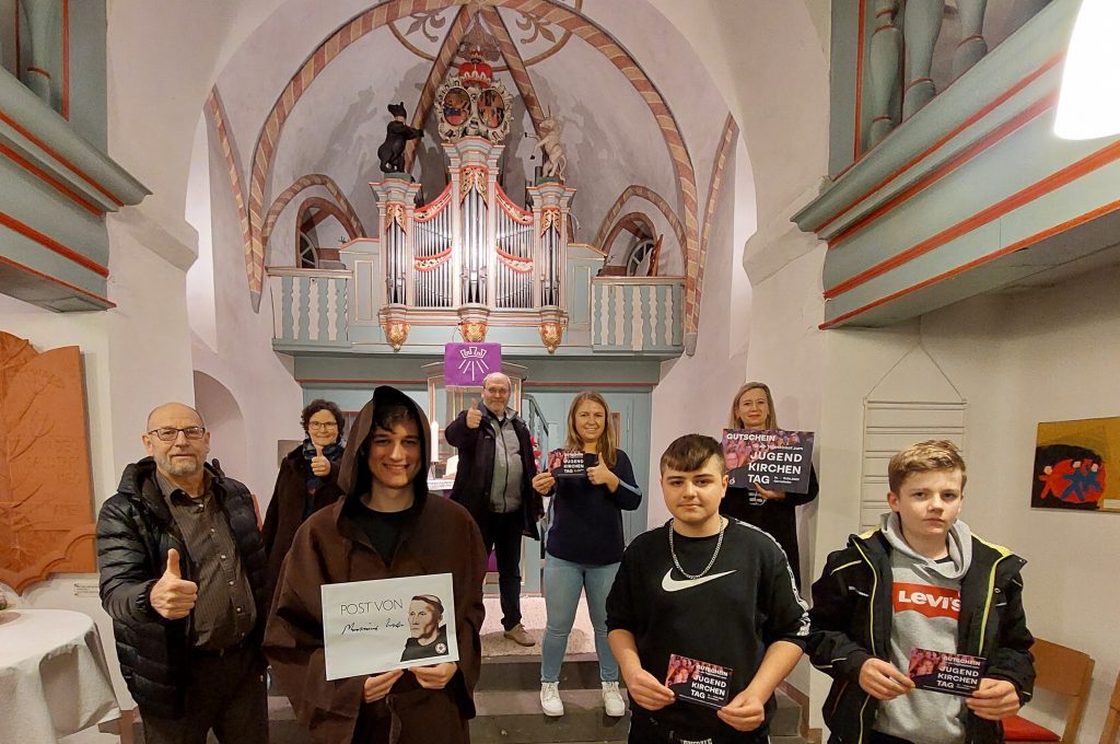 Eine Extra-Überraschung zu Weihnachten gab’s für die Konfis der evangelischen Kirchengemeinde Eppenrod, die den ersten Platz bei einem landesweiten Stationenspiel in Worms gewonnen hatten. Martin Luther höchstpersönlich überreichte Urkunde und Preisgeld. Dazu gab es Freikarten für den Jugendkirchentag der Landeskirche. Verantwortliche der Evangelischen Jugend in der Propstei Rheinhessen und Nassauer Land gratulierten zu den kreativen digitalen Wettbewerbsbeiträgen. Foto: Matern