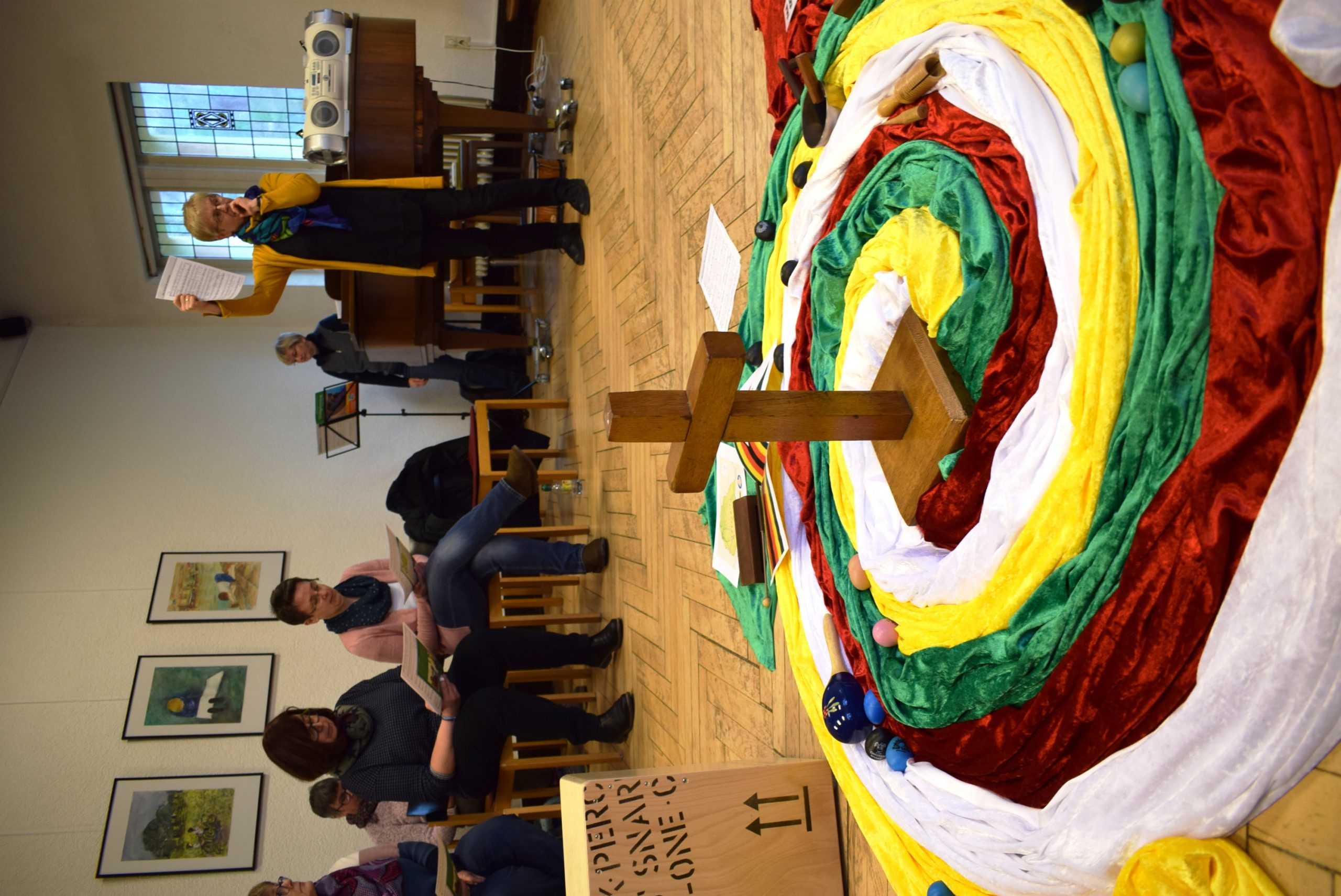 „Steh auf und geh!“ lautet das Motto in diesem Jahr und bezieht sich auf eine Bibelstelle, die von der Heilung eines Lahmen berichtet. In Bad Ems nahm Claire Metzmacher, Bildungsreferentin des Dekanats Nassauer Land, das zum Thema passende Titelbild des Weltgebetstages in einer kleinen Andacht zu Beginn des Vorbereitungstreffens in den Blick. Gemalt hat es die Künstlerin Nonhlanhla Mathe. Symbolkräftig greift es Schatten und Licht des Lebens auf, zeigt, wie aus Niedergeschlagenheit, der helfenden Hand einer Frau und dem Weitersagen „Farben der Freude, Liebe und Hoffnung entstehen“, so Metzmacher.