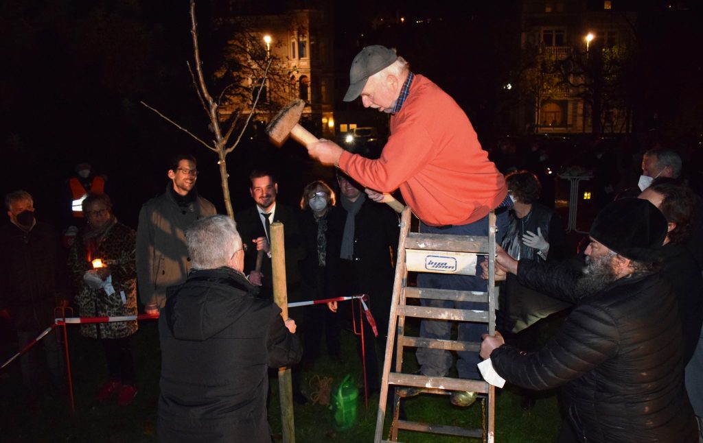 Veranstalter und Kommunalpolitiker pflanzen Baum an Kirche