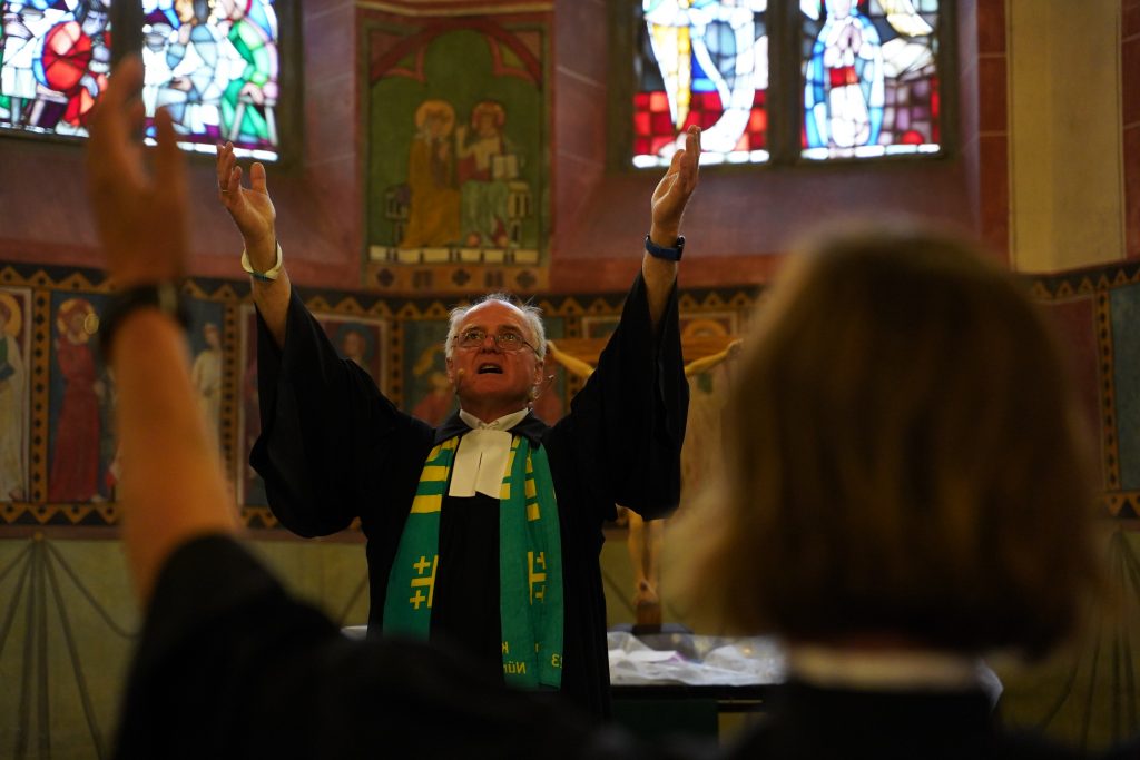 Dieser zeigte sich dankbar und beschenkt. Gerade seine Tätigkeit als Klinikseelsorger in Lahnstein habe verdeutlicht, dass sich Menschen nicht überfordern dürften. In einer (Arbeits-)Welt, die nach Perfektionismus strebe, wo immer mehr in kürzerer Zeit zu tun sei, sei es wichtig, an die befreiende und fürsorgende christliche Botschaft zu erinnern. Mit Blick zum Posaunenchor, der unter Leitung von Dirk Schäfer den Gottesdienst eindrucksvoll begleitete, warb er für Pausen. „Die Trompete lehrt uns: Atem holen ist wichtig, um dann im richtigen Moment wieder aktiv zu werden“. Mit tollen Vorträgen verschönerte der St. Barbara-Chor Lahnstein, dem er selbst angehört, unter Leitung von Wolfgang Kemp die Verabschiedung. Letzterer spielte außerdem die Orgel.