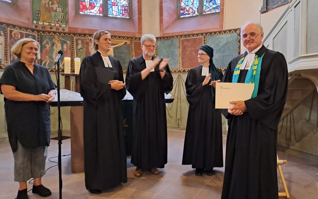 Viel Beifall gab es für Matthias Metzmacher während seines Abschiedsgottesdienstes, nicht nur von Dr. Ute Stuhlträger-Fatehpour, Pröpstin Henriette Crüwell, Pfarrer Gerd Biesgen und Dekanin Kerstin Janott (von links), die den künftigen Ruheständler segneten. Foto: Bernd-Christoph Matern