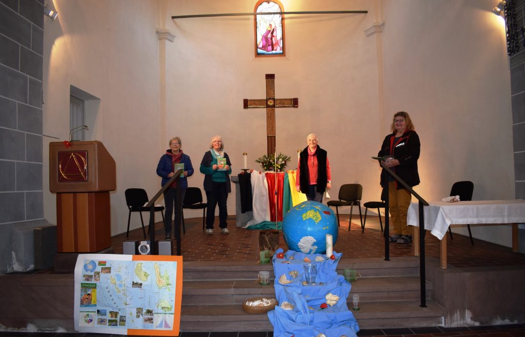 So paradiesisch Inseln, Tier- und Pflanzenwelt, Strände und türkisblaues Meer auch anmuten – die Menschen auf den Inseln im pazifischen Ozean sind ganz besonders stark vom Klimawandel betroffen und leiden unter Erdbeben und Stürmen, die das Land immer wieder treffen, zuletzt 2020 der Zyklon Harold. „Worauf bauen wir?“ war der Tag in diesem Jahr von den Frauen aus Vanuatu überschrieben. Da lautete analog, digital, in der Tüte und in allen Sprachen die Antwort gleich: „Mit Gott bestehen wir“. Bernd-Christoph Matern