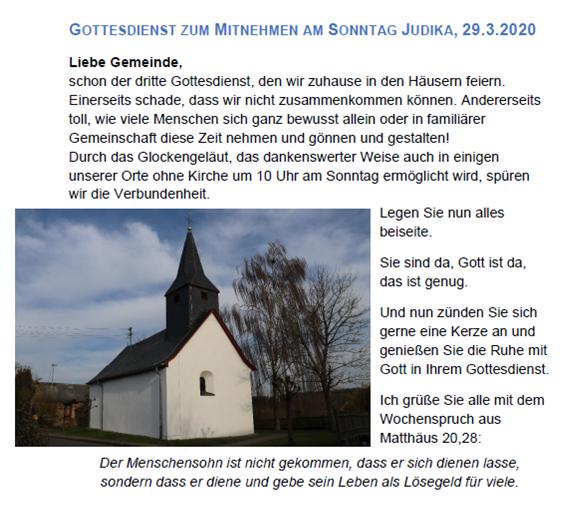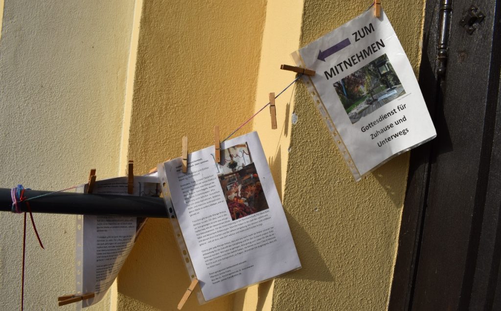 Die Telefonleitungen in den Pfarrämtern glühten für Kontakte und Gespräche heiß. Mancherorts wurden Anrufbeantworter aktiviert, um zu jeder Zeit gute Gedanken ans Ohr zu bekommen. Liebevoll gestaltete Post von Pfarrpersonen und Kirchengemeinden wurde an Haushalte verteilt, Andachten, Gebete, Karten und kleine Aufmerksamkeiten; auch Einkäufe wurden erledigt, damit besonders von einer Covid-Infizierung gefährdete Menschen versorgt blieben und Ansprache fanden. „Gottesdienste to go“ lieferten vor allem in Klingelach statt nur eines Gottesdienstes in der Woche jetzt täglich und an den Feiertagen sogar vielfach Andachten und Abendmahlsfeiern an die Häuser, an und in Gärten der Gemeindeglieder.