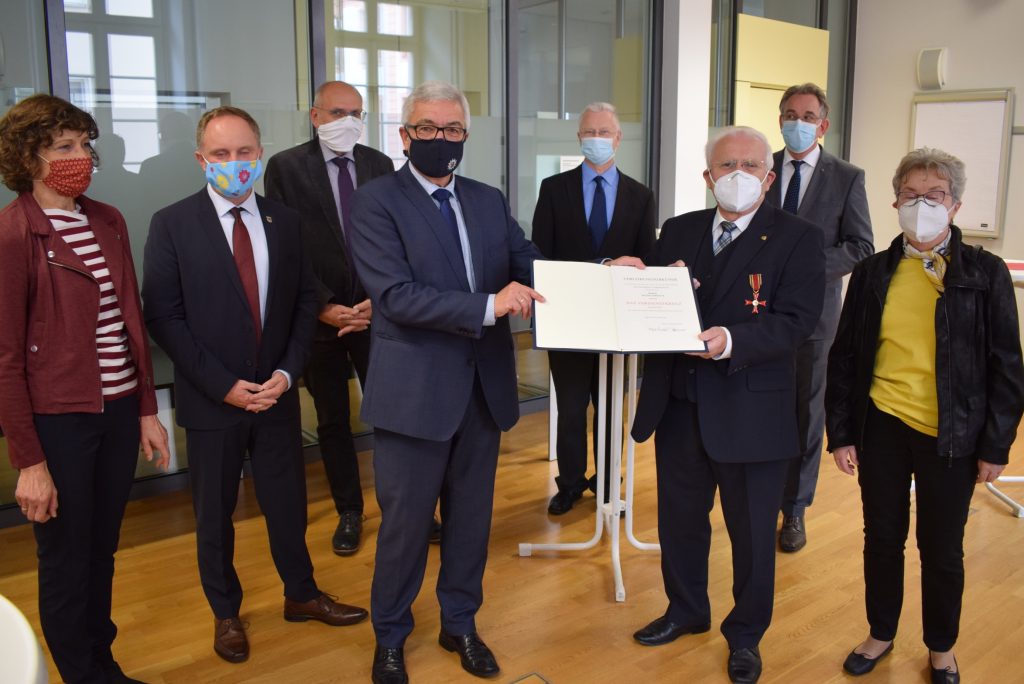 Verstärkung gab es im ehrenamtlichen Verkündigungsdienst. So wurden mit Benjamin Albrecht, Max Fischer, Carolin Richter und Jonas Völzke gleich vier Personen für den Lektorendienst beauftragt. Einen Monat später konnte Dekanin Renate Weigel mit Christina Dahmen, Michael Eckel und Barbara Köhler drei neue Personen für ihren Prädikantendienst segnen. Mit Berthold Hagner aus Dausenau (rechts) verabschiedete sie ein „Urgestein“ des ehrenamtlichen Verkündigungsdienstes, in dem sich dekanatsweit derzeit 48 Menschen engagieren. Große Ehre wurde einem anderen seit Jahrzehnten engagierten Prädikanten und mannigfach engagierten Ehrenamtler zuteil: Dieter Zorbach aus Bornich (links) erhielt vom Bundespräsidenten das Bundesverdienstkreuz. In der Corona-Pandemie war die von Zorbach gegründete „Initiative 55 +/-“ eine der ersten, die den Kontakt von analogen auf digitale Angebote umstellte.