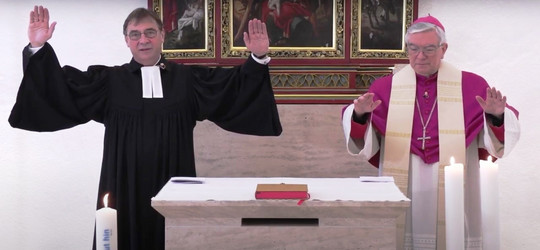 Der Kirchenpräsident der Evangelischen Kirche in Hessen und Nassau (EKHN), Volker Jung, betonte in der Limburger Bischofskapelle bei einem Online-Gottesdienst mit Weihbischof Thomas Löhr, dass der Glaube auch digital seine Kraft entfalten könne. Mit Blick auf den bevorstehenden Ökumenischen Kirchentag, der angesichts der Corona-Einschränkungen vornehmlich im Internet stattfinden wird, sagte Jung: „Es gibt es viele Menschen, die Sehnsucht haben – nach Gottes Nähe, die Halt gibt, die zurechtbringt, die gesund macht“. Die Suche nach Gottes Nähe in der Begegnung mit Jesus Christus habe auch ihren Platz „in unserer digitalen Welt“.