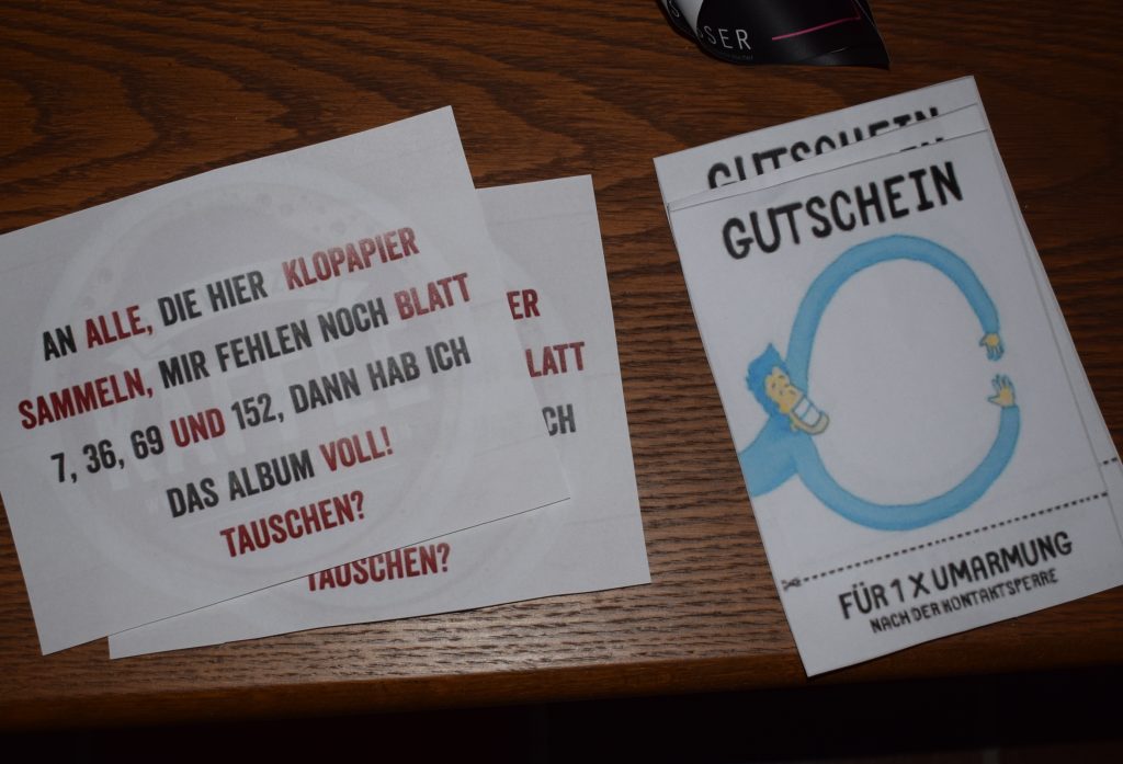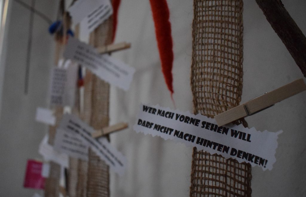 Mit einfachen Mitteln und viel Fantasie regen die Teenager der Esterau-Gemeinde die Kirchenbesucher zum Lächeln, Nach- und Umdenken an. Sinnsprüche und Witze, die mit Wäsche-Klammern an Kordeln befestigt sind und auch mitgenommen werden dürfen, hellen die Gemüter auf. „Beende den Tag immer mit positiven Gedanken, denn egal wie schwer die Dinge auch waren, morgen ist ein neuer Tag!“, ist da etwa zu lesen. Kleine Witze, etwa übers Hamstern von Klopapier, erheitern das Gemüt. Auch ein „Konfetti-Bausatz“ zum Mitnehmen für die fröhliche Karnevalsfete zuhause findet sich im kleinen Gotteshaus, das den Hygiene-Regeln entsprechend betreten werden darf.