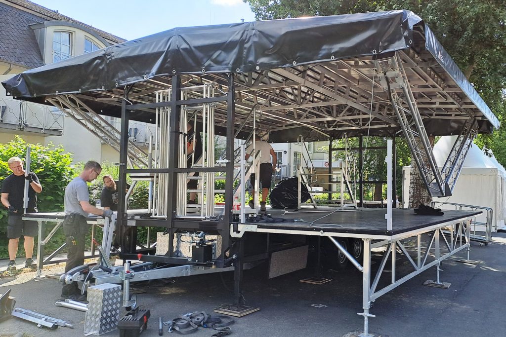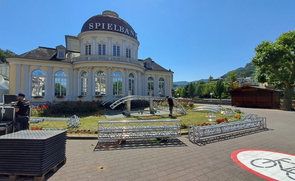 BAD EMS/RHEIN-LAHN. (15. Juni 2023). Kaum noch wiederzuerkennen ist die Kurstadt Bad Ems. Zwischen Brunnenhalle und Hasenkümpeln sorgen seit Montag zirka 800 Menschen dafür, dass sich die Kurstadt in eine einzige riesige Festmeile verwandelt, wo Ministerpräsidentin Malu Dreyer morgen den 37. Rheinland-Pfalz-Tag eröffnen wird. Immerhin erwartet die rund 10.000 Einwohner zählende Kommune ein fast 15-Faches an Gästen in den kommenden drei Tagen.