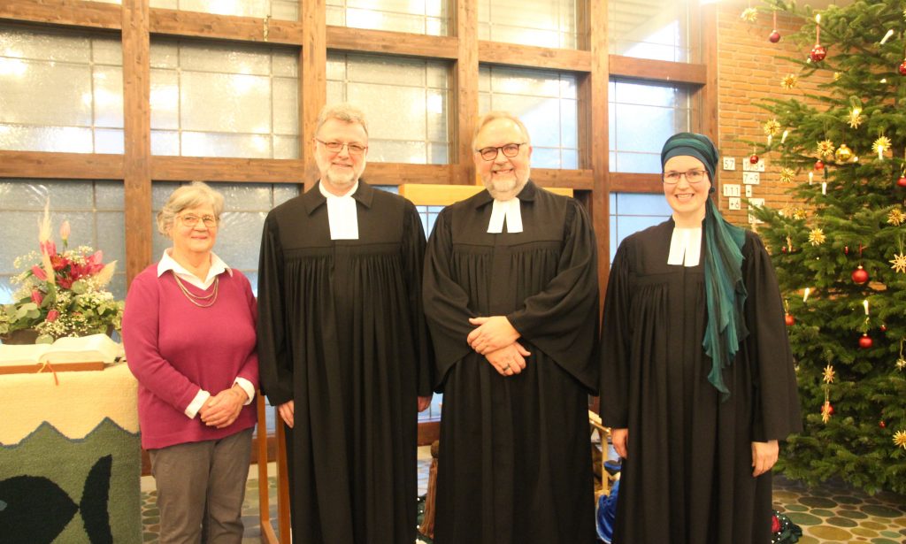 Die Freude beim Einführungsgottesdienst war nach zweiähriger Vakanz groß (von rechts): Dekanin Kerstin Janott, Pfarrer Matthias Schmidt, der theologische Stiftungsvorstand Pfarrer Gerd Biesgen und Thea Matzat vom Kirchenvorstand. Fotos Nörtershäuser