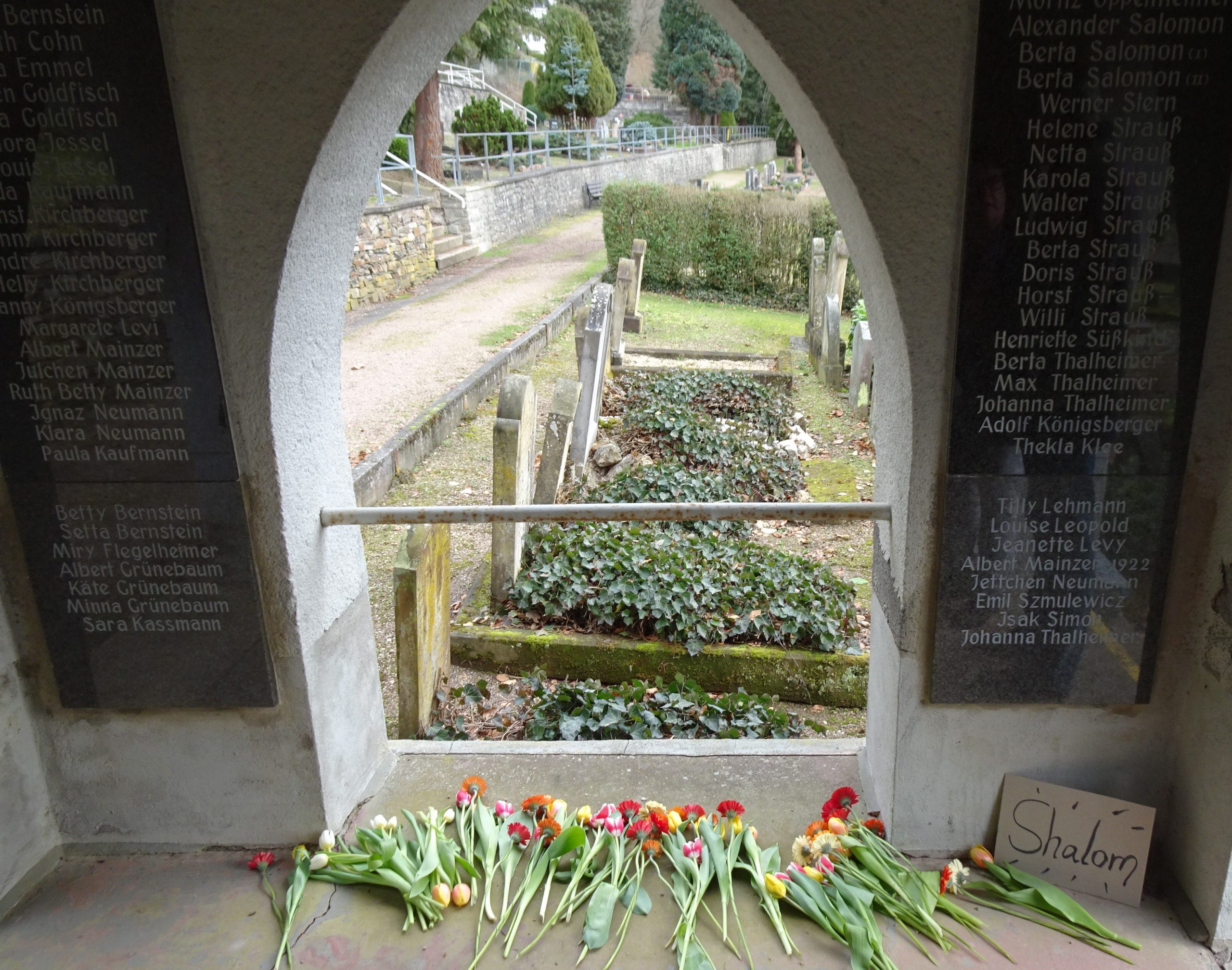 Schweigend zog die Gruppe zu der jüdischen Trauerhalle. „Wir wissen nicht, wer dahintersteckt. Deshalb soll unser Hauptaugenmerk heute nicht die Untat sein“, sagte Dekanin Renate Weigel. „Wir wollen uns mit denen verbinden und ihnen die Ehre erweisen, derer wir hier gedenken. Wir wollen der Verunreinigung eine Schönheit entgegensetzen, etwas Liebevolles tun.“