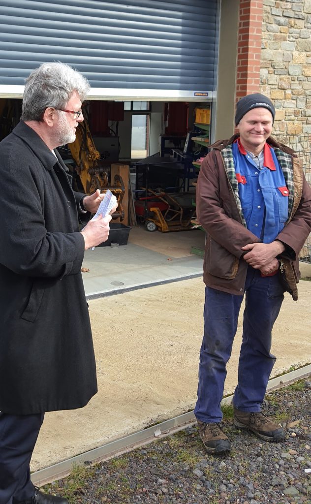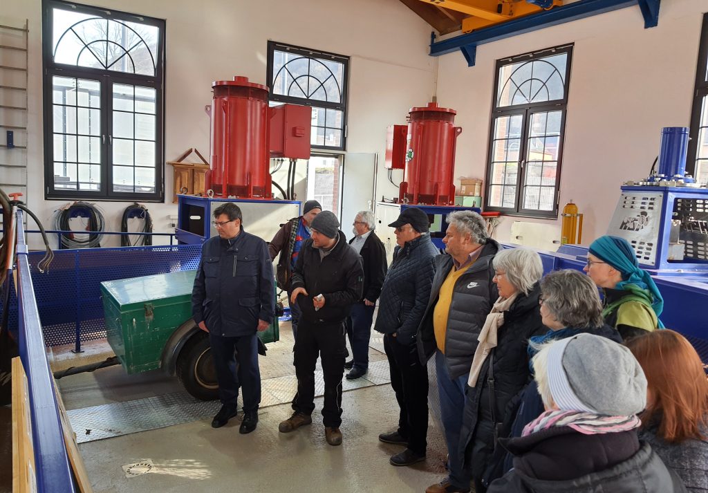 Nach der Einstimmung von Pfarrer Gerd Biesgen, theologischer Vorstand der Stiftung Scheuern, führte Ronald Steinhoff, der Betreiber des Kraftwerks, mit seinen Angestellten durch die Werkshalle. Neben einer geschichtlichen Einführung zur Wasserkraft an der Lahn erfuhren die Teilnehmenden viel über die Technik innerhalb der Bad Emser Anlage. „Als gelernter Handwerker fasziniert mich die hohe Effizienz dieser Turbinen, die bei der Einfachheit der Technik enorm ist“, sagte Landrat Denninghoff.