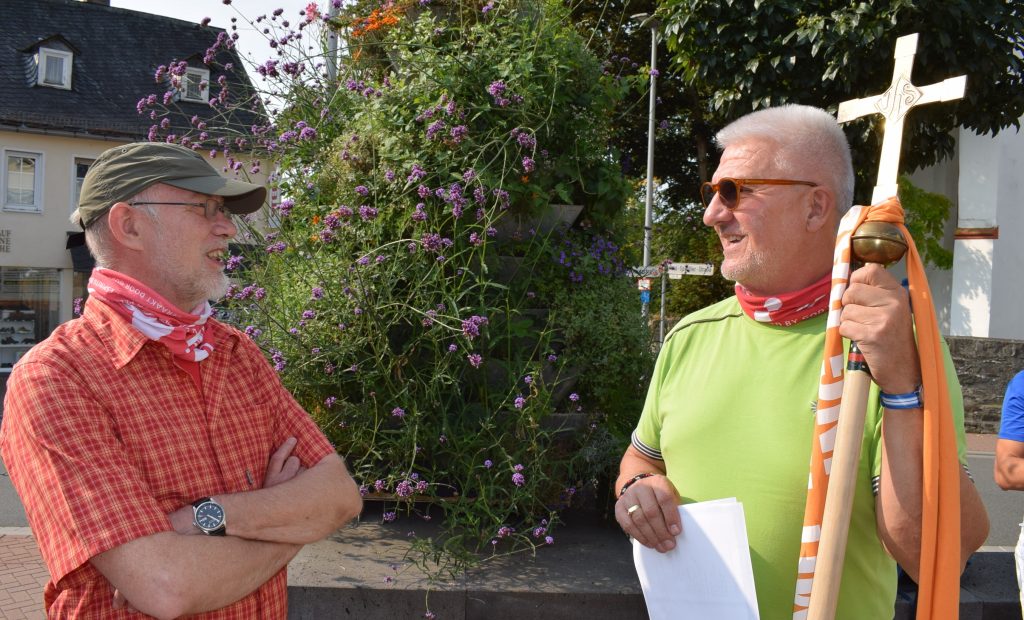 „Mit Hochgeschwindigkeit jagen wir durchs Leben; beim Pilgern können wir das Tempo verlangsamen und das richtige Schrittmaß finden“, begrüßten Stephan M. Geller, Roswitha Zenker und Lothar Bindczeck die Pilger-Gäste vor der evangelischen St. Salvator-Kirche in Nastätten. Das Leben entschleunigen, Gemeinschaft erleben, indem man den Schritt anpasst – dafür sei das Pilgern wichtig. Während die Wallfahrt auf ein Ziel hin ausgerichtet sei, verbinde der Pilgertag Weg und Ziel, ging es doch zum Kloster Schönau nach Strüth.