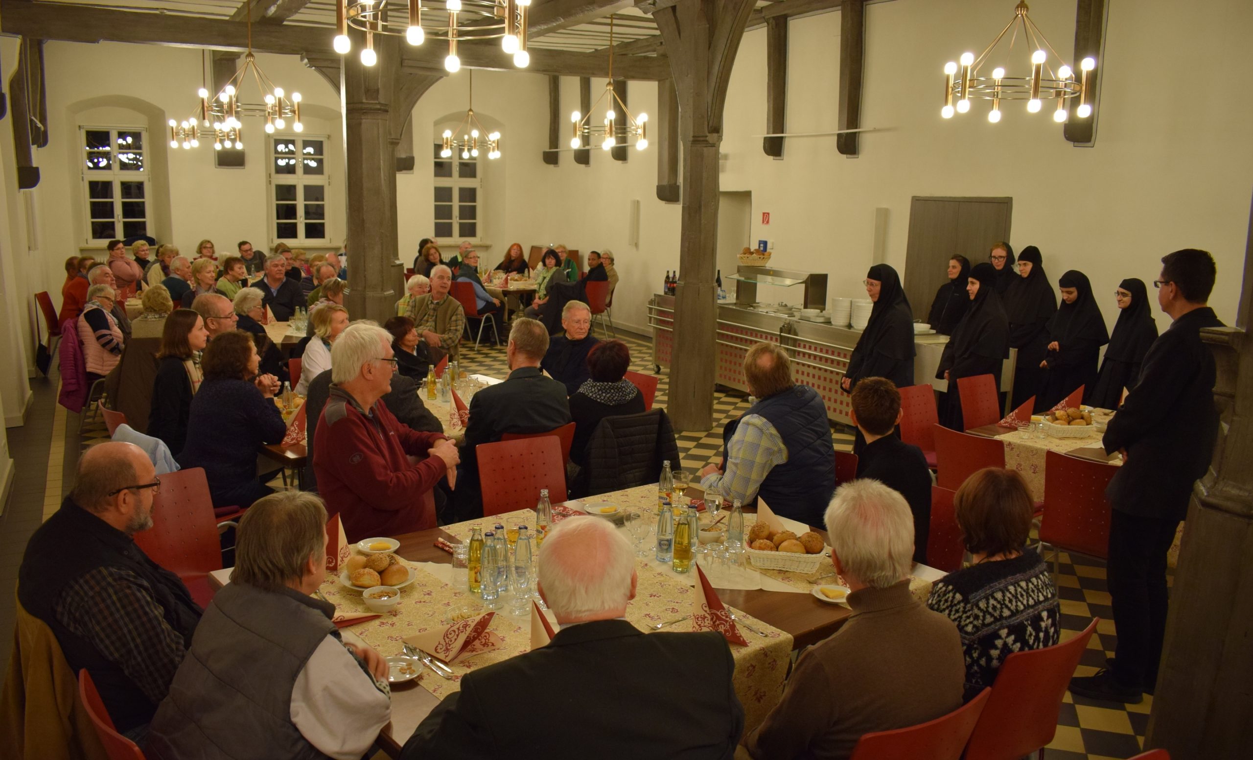 Die Ökumene zwischen evangelischen, katholischen und erstmals auch den griechisch-orthodoxen Christinnen und Christen ging im Pilgersaal des Klosters Arnstein auch durch den Magen. Fotos: Matern
