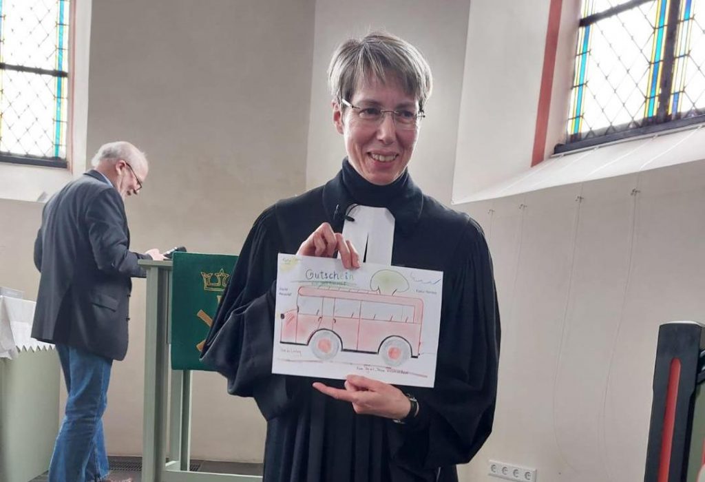 Über einen Gutschein für einen Tagesausflug mit ihrem Kirchenvorstand freute sich Antje Dorn. Ziel wird die Abtei Marienstatt bei Hachenburg im Westerwald sein. Foto: Weidner