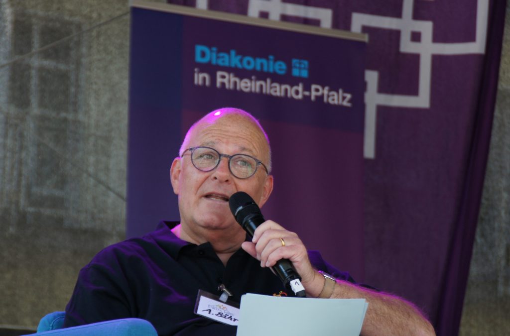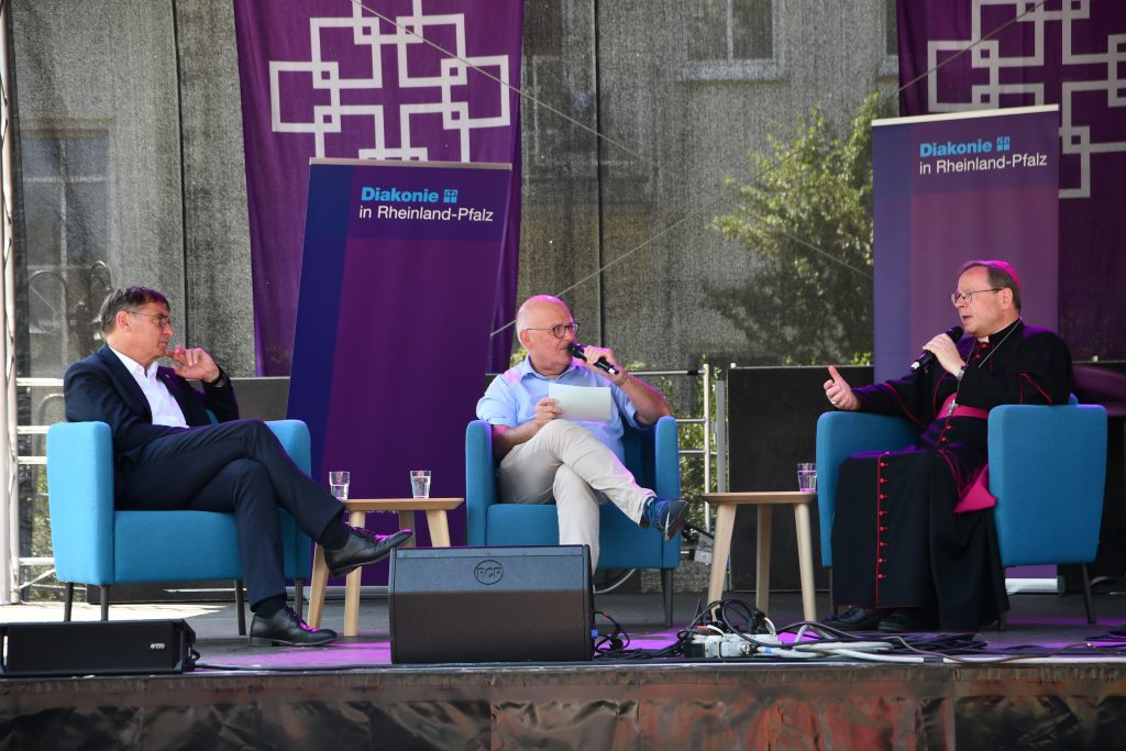 Caritas und Diakonie seien „ein starkes Stück Kirche“ betonten unisono Bischof Georg Bätzing und Kirchenpräsident Volker Jung auf der Blauen Couch. Kirche gehöre nicht nur dorthin, wo sich Menschen begegnen wie bei einem Rheinland-Pfalz-Tag, sondern überall dort, wo Menschen in Not sind. Das sei ihr Markenkern. Dankbar zeigten sich beide für die aus christlicher Überzeugung dafür arbeitenden unzähligen Ehrenamtlichen. Bernd-Christoph Matern