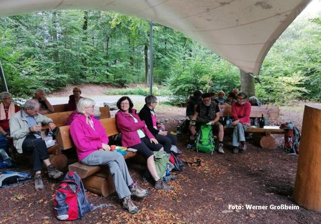 Zu den Kostbarkeiten entlang des Weges gehörten nicht nur Blicke in eine wunderschöne Landschaft, sondern auch Zufallsentdeckungen wie die Gedichte, die sich in Netzbach aus einem Briefkasten ziehen lassen. In Eschbach traf die Gruppe zufällig die Försterin, die über Dürre, Borkenkäferbefall und Klimawandel aufklärte. Am anderen Ort kam die Geschichte einer Bauersfamilie zu Gehör, die im Krieg eine jüdische Familie versteckte; und dass es in Lahnstein eine Jerusalem-Apotheke gibt, war auch vielen unbekannt.