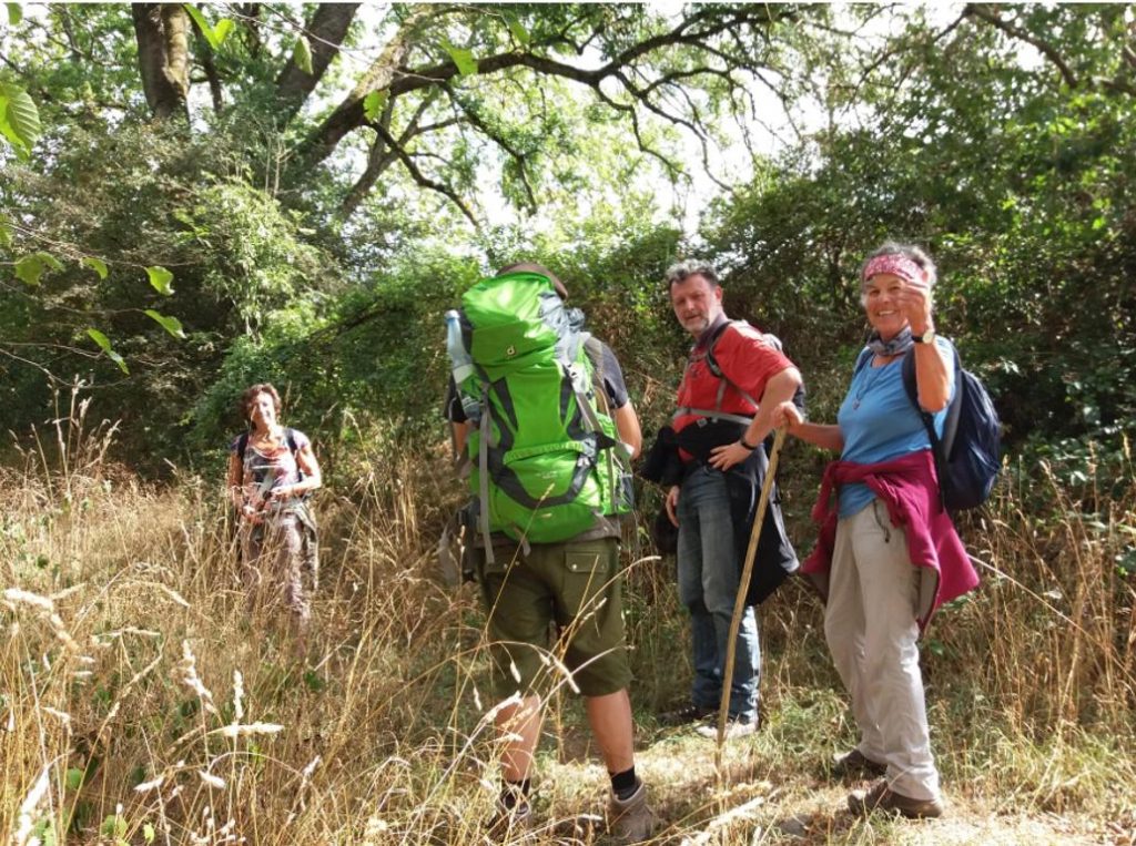 Neben organisatorischen Fragen wie der Suche nach Übernachtungsplätzenn an den Etappenzielen, bewegte die Theologin noch weitaus mehr die geistliche Gestaltung der Tage. „Wie gewinnen wir Hoffnung und Mut nach so viel Verunsicherung? Die Frage hat mich als Dekanin und als Christenfrau in den vergangenen Wochen und Monaten stark bewegt. Der Pilgerweg konnte nur gelingen, wenn Menschen sich einlassen und einladen lassen würden.“ Und es fanden sich mehr Personen als erwartet, die das taten und mitgingen nicht nur im Schweigen. „Es war bewegend, ganz einfach miteinander zu beten, zu singen, Abendmahl zu feiern. Heitere Körperübungs-Einheiten auf der Wiese, Mahlzeiten unter freiem Himmel, Laufen durch Regen haben uns miteinander verbunden. Ganz passend hielten wir es in diesen Tagen mit dem Pilger-Du. Wir waren geschwisterlich.“
