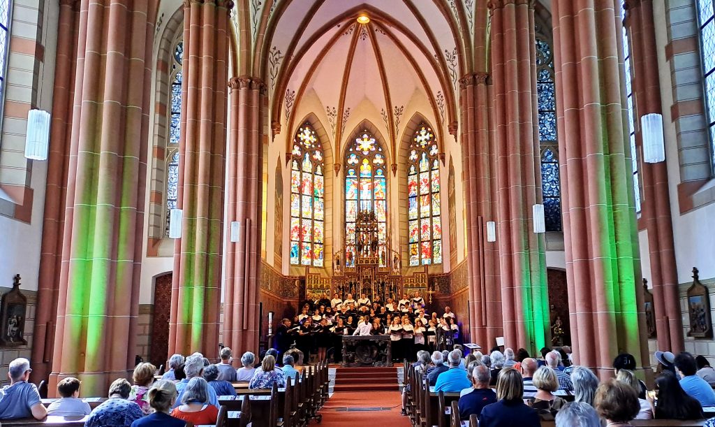 Etwas zur Ruhe kommen und tolle Kirchenmusik genießen: Im Innern der illuminierten katholischen Martinskirche nutzten das viele Gäste des Landesfestes. Der katholische Bezirksdekan Armin Sturm warb mit Dekanin Janott nicht nur ums Verbindende zwischen den Menschen, er ging auch im Festzug mit.