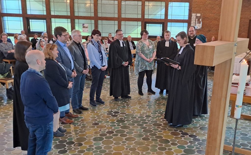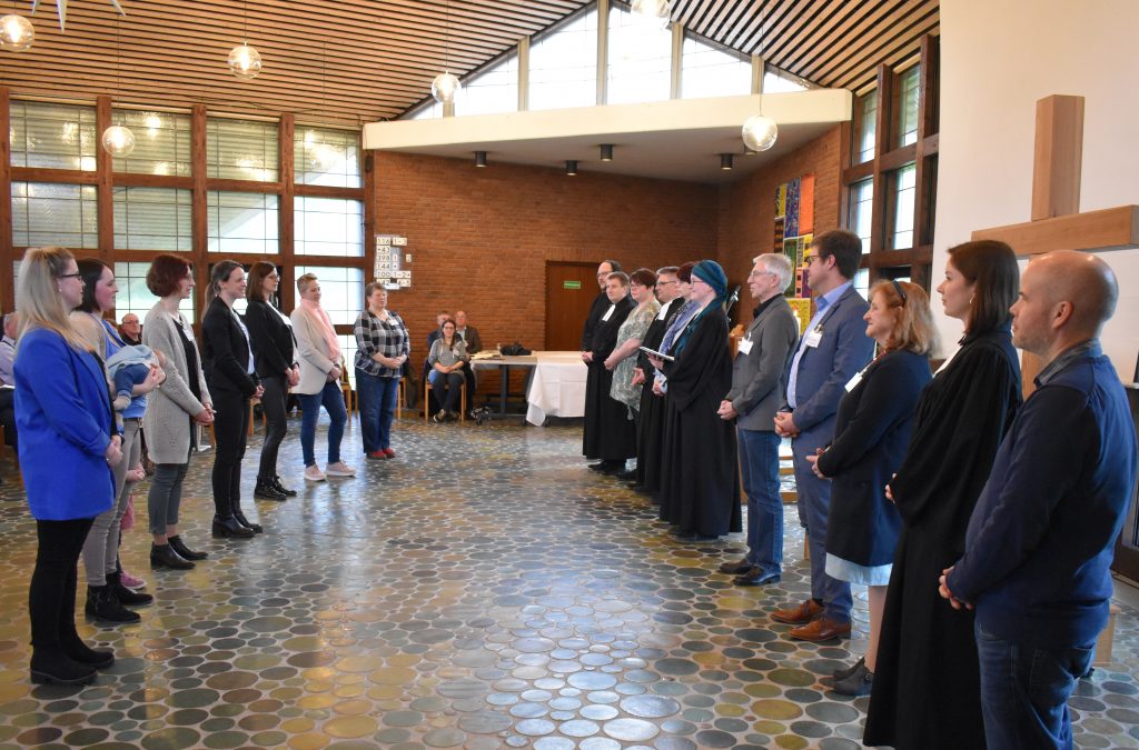 Dekanin Kerstin Janott und die Mitglieder des Synodalvorstandes gaben den neuen Mitarbeitenden des Dekanats Nassauer Land Segensworte mit für ihren Dienst. Fotos: Bernd-Christoph Matern