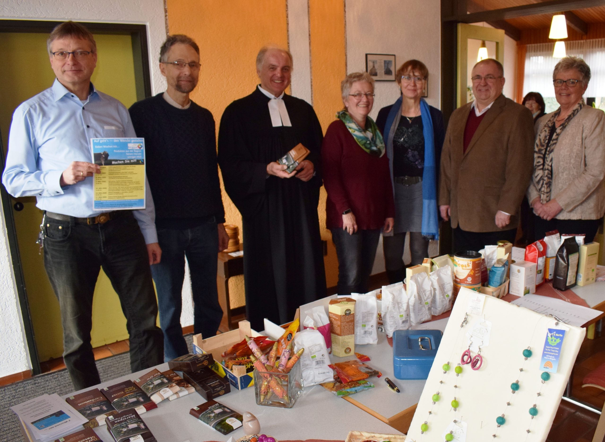 RHEIN-LAHN/SINGHOFEN. (2. März 2020) Mit einem Gottesdienst und einem fairen Frühstück in Singhofen ist die Fastenaktion „7 Wochen mit…“ des evangelischen Dekanats Nassauer Land eröffnet worden. Sie wirbt für einen bewussten Umgang mit den Ressourcen der Erde und ein gerechteres Handeln im globalen Wirtschaften. „Jeder vermeintlich kleine Schritt kann dazu beitragen, auch international zu wirken“, sagte Pfarrer Matthias Metzmacher, Pfarrer für gesellschaftliche Verantwortung im Dekanat, der den Gottesdienst leitete und die Fastenaktion ins Leben gerufen hat und organisiert.