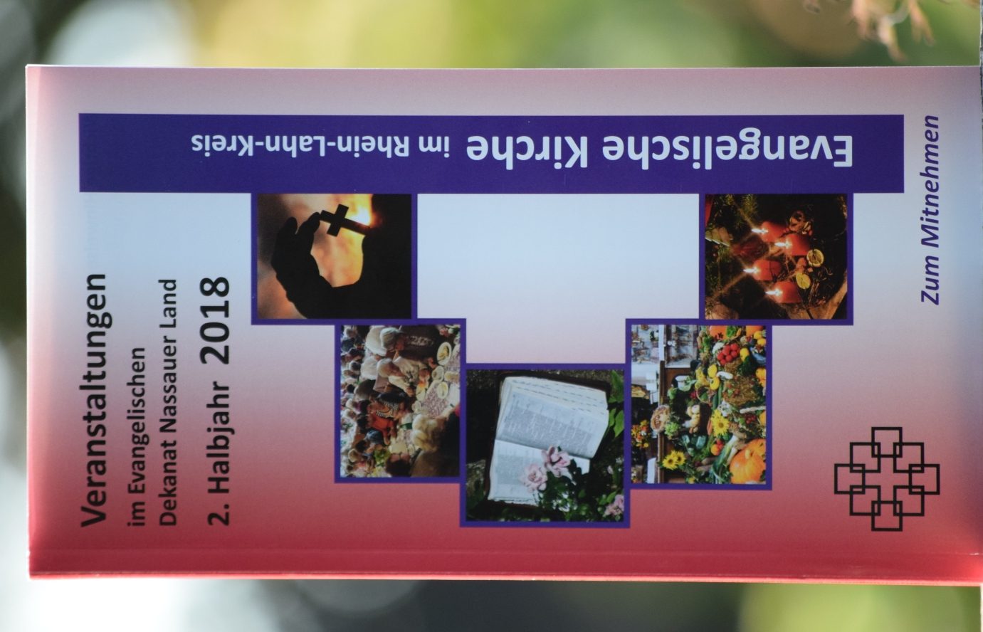 RHEIN-LAHN. (30. Juli 2018) Umfangreicher denn je ist der Veranstaltungskalender der evangelischen Bildung bis zum Jahresende. Die Angebote in den Kirchengemeinden des evangelischen Dekanats Nassauer Land reichen in der zweiten Jahreshälfte von kleinen und größeren Exkursionen über eine Reihe besonderer Gottesdienste bis hin zu Selbsthilfegruppen und anderen hilfreichen Möglichkeiten der Begegnung.