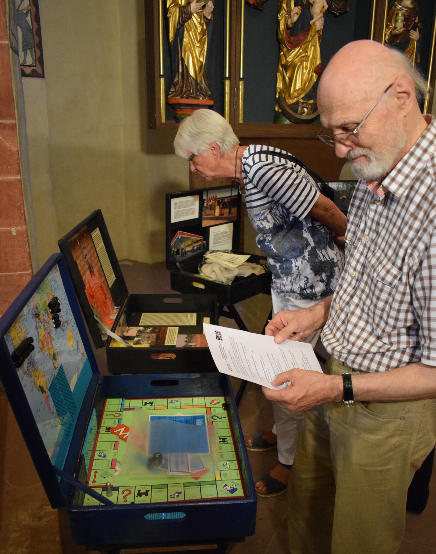 Die Koffer in der Kastorkirche klären auf über Missstände in den Rohstoffe liefernden Ländern und wie diese mit dem Wirtschaften von Firmen in Industrienationen und dem dortigen Kaufverhalten zusammenhängen; Zustände und Wirtschaftsmethoden, gegen die Organisationen wie der evangelische Entwicklungsdienst „Brot für die Welt“ schon lange protestieren. Von ihm wurde auch die Wanderausstellung konzipiert. Auch wenn manche Texte etwas klein gedruckt sind, bietet sie viele Informationen über die Rolle der Rohstoffe für eine ungerechte Welt und Denkanstöße für ein menschenwürdigeres und umweltfreundlich nachhaltiges Wirtschaften in der Welt.