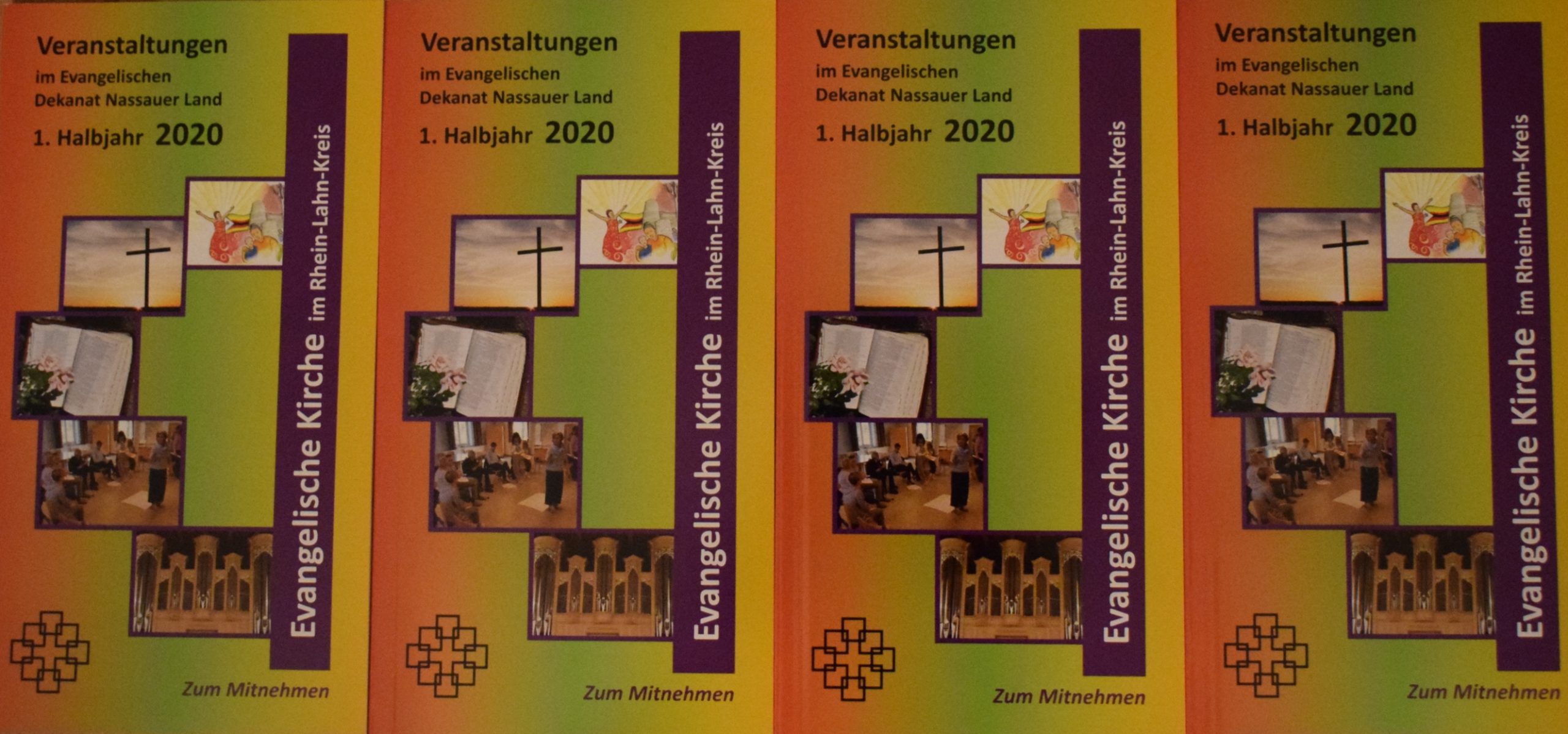 RHEIN-LAHN. (2. Januar 2020) 160 Seiten stark ist der neue Veranstaltungskalender, den die Bildungsreferentin des evangelischen Dekanats Nassauer Land Claire Metzmacher für das 1. Halbjahr 2020 zusammengestellt hat. Er liefert einen Überblick über das breite Spektrum von Veranstaltungen in den Kirchengemeinden an Rhein, Lahn und Aar – von Diez bis Lahnstein, von Eppenrod bis Lorch. Er ist sowohl in einer gedruckten Ausgabe erhältlich als auch im Internet abrufbar.