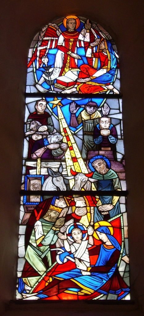 Die Geburt Jesu feiern die Menschen im Rhein-Lahn-Kreis an Heilig Abend und Weihnachten. Auch wenn Gottesdienste einmal mehr nicht wie sonst möglich sind: An der Botschaft selbst ändert das nichts, die auch in zahlreichen Kirchenfenstern wie hier in Dausenau (oben) oder in Nassau von Heinz Hindorf dargestellt wird oder liebevoll mit Holz gestaltet wie in Miehlen. Fotos: Matern