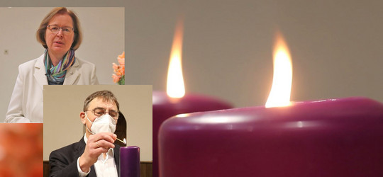 DARMSTADT/RHEIN-LAHN. (26. Dezember 2021) Der hessen-nassauische Kirchenpräsident Volker Jung und Stellvertretende Kirchenpräsidentin Ulrike Scherf grüßen in einem Video zu Weihnachten 2021 insbesondere alle Mitarbeitenden der Kirche in der durch die Pandemie eher düsteren Zeit. „Viele Menschen in unserer Kirche tragen in der Pandemie das Licht von Bethlehem weiter. Sie geben anderen Hoffnung und Kraft. Für diesen großen Einsatz danken wir von Herzen allen Menschen für ihre Arbeit in Kirche und Diakonie, in Gemeinden und Dekanaten, in Kindertagesstätten, Schulen und Pflegeeinrichtungen, in Krankenhäusern und Hilfsdiensten“, erklärt Volker Jung in dem Videogruß.